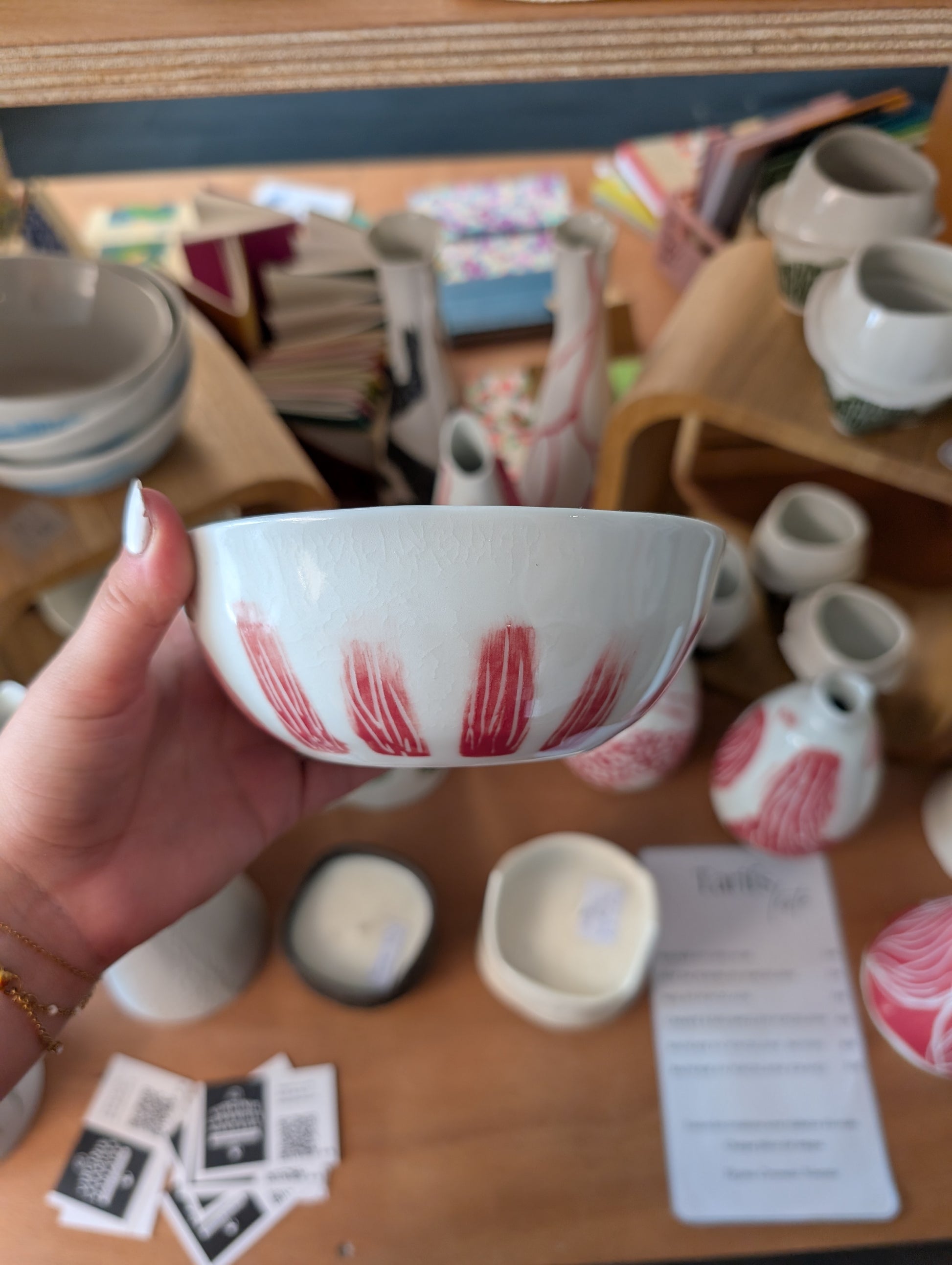 Blo blanc et rouge en porcelaine réalisé et décoré à la main