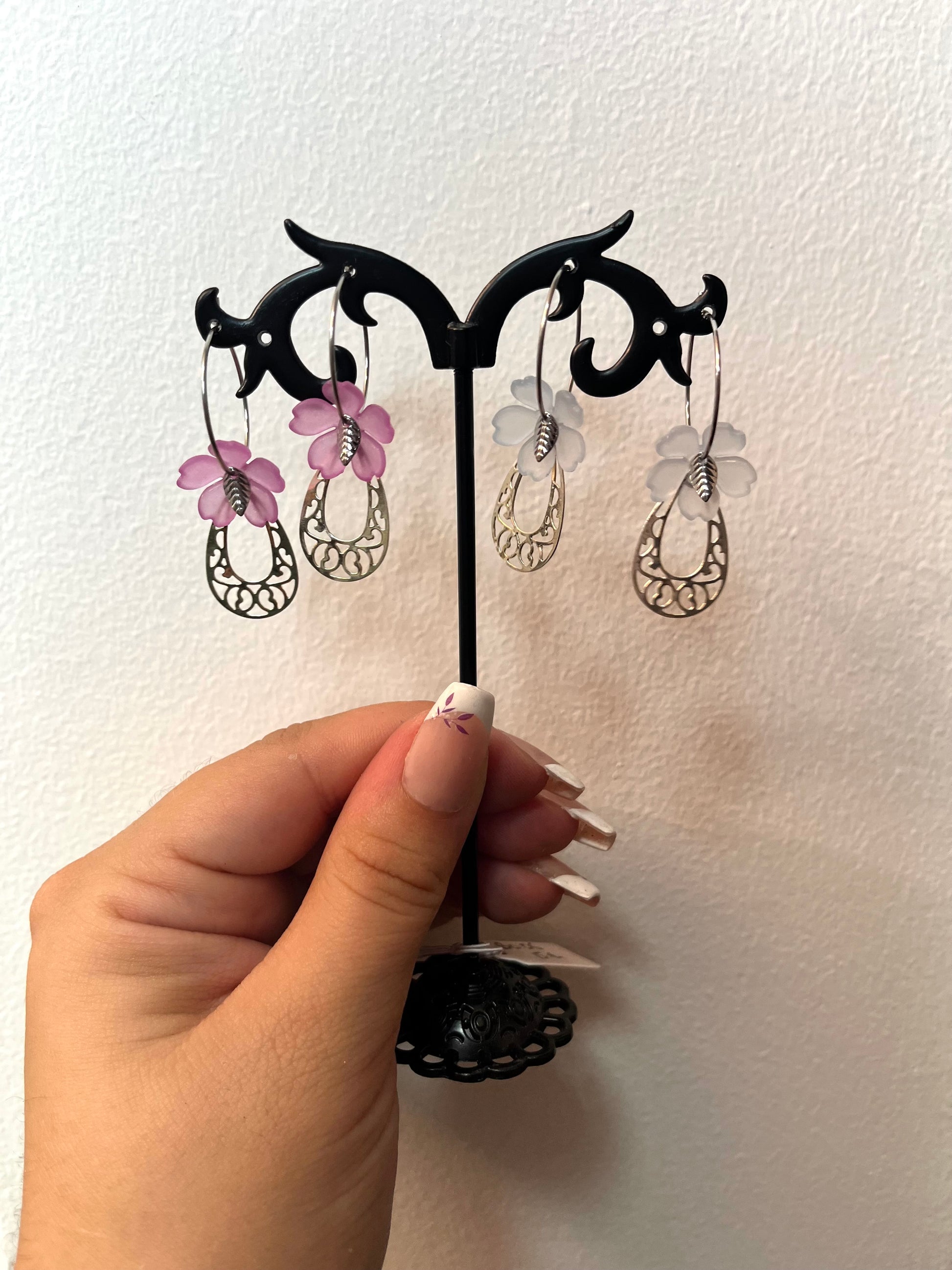 Boucles d’oreilles, créole, pendante avec fleurs, modèle au choix
