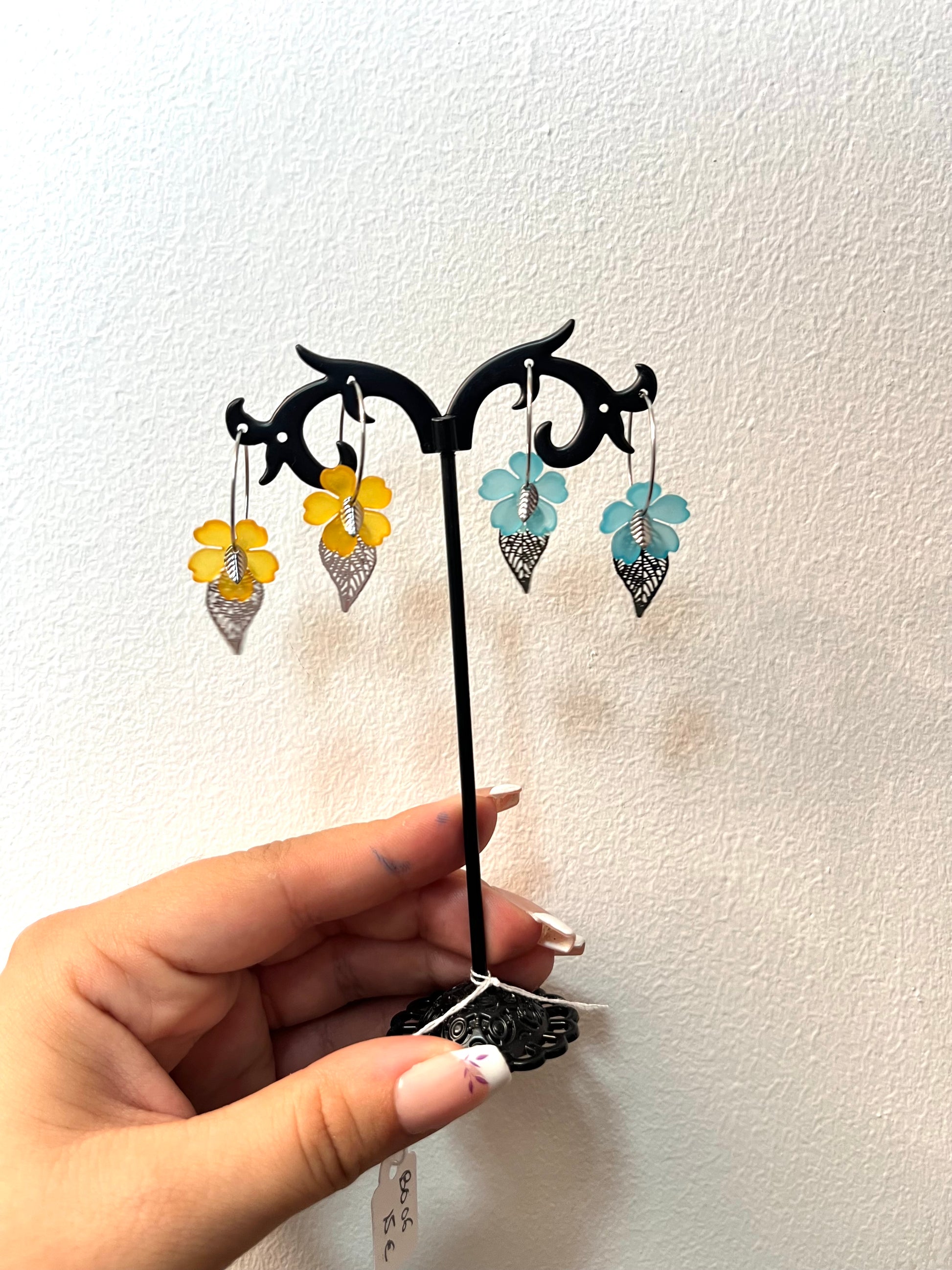 Boucle d’oreille créole avec fleur colorée, modèle au choix