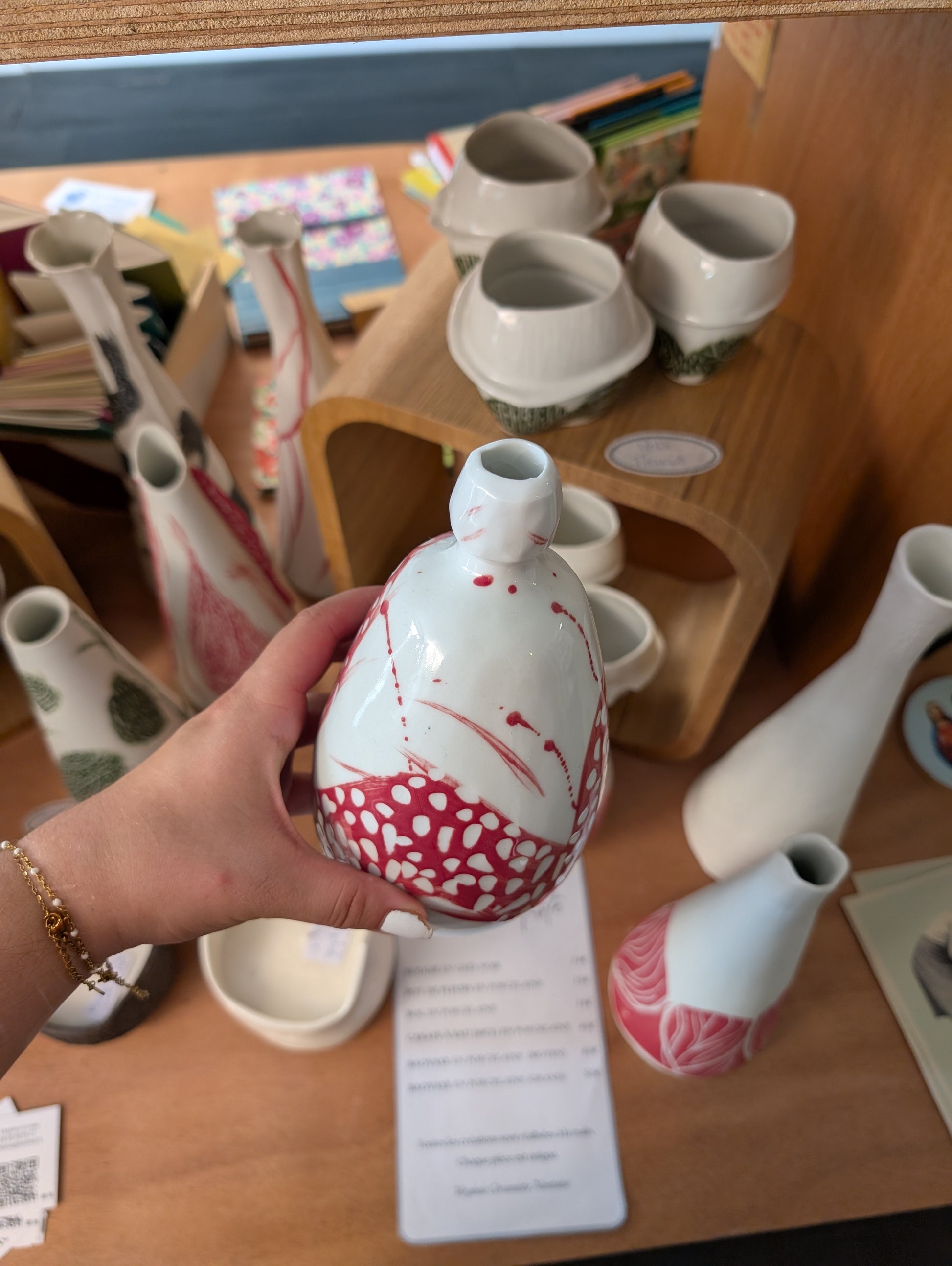 Carafe à eau blanc et rouge en porcelaine réalisé et décoré à la main.