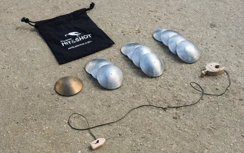 Le jeu en bois Hit & Shot ressemble à la pétanque, mais se joue avec des palets creux. Chaque joueur lance ses palets pour les rapprocher le plus possible d’une cible au sol. Le but est de marquer des points en plaçant ses palets plus près que ceux de l’adversaire. Facile à apprendre, ce jeu favorise la précision et la stratégie, idéal pour des moments conviviaux en famille ou entre amis.