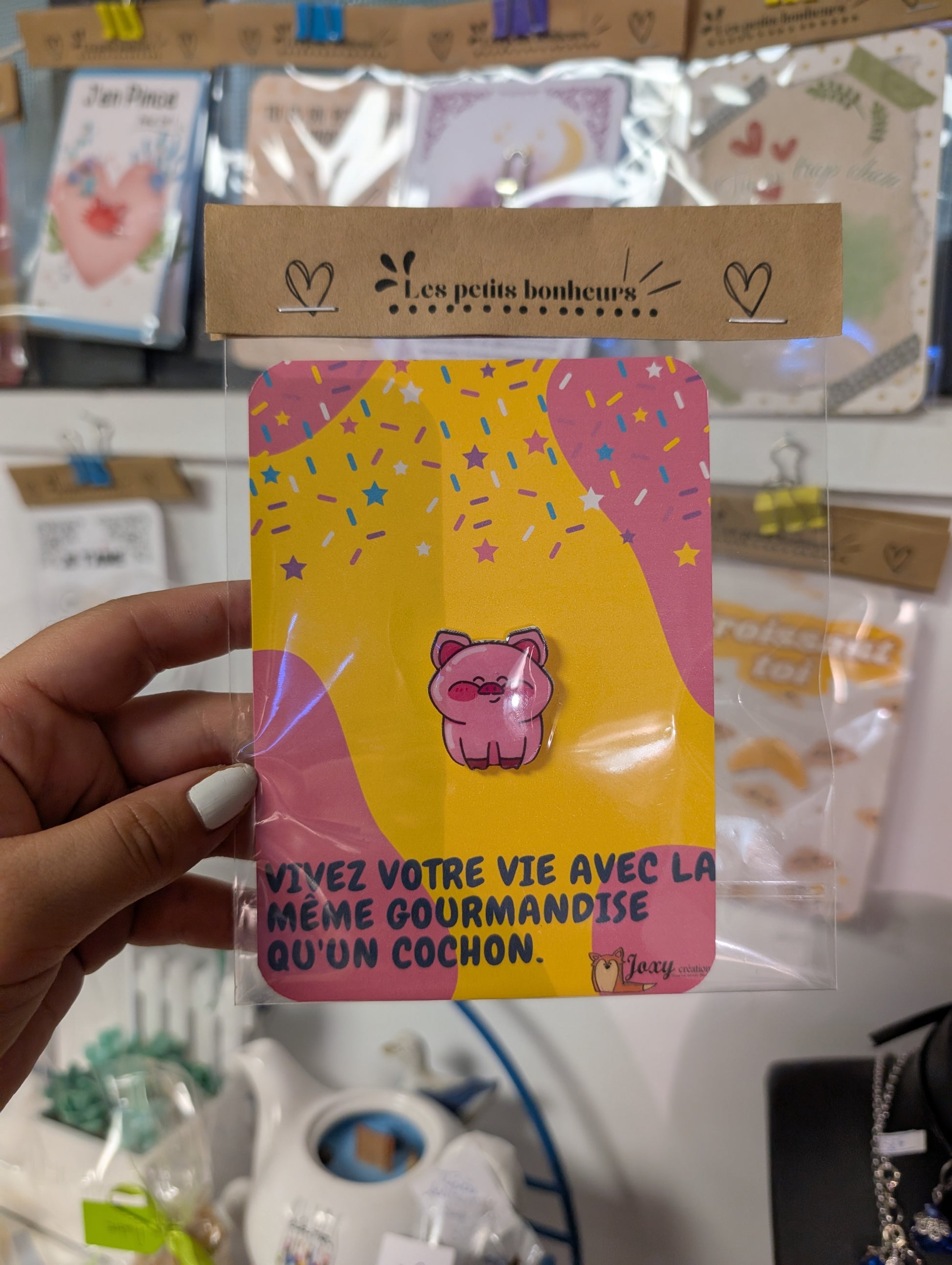 Découvrez notre adorable pin's en forme de cochon, le "Petit bonheur Cochon" à ajouter à votre collection! Fabriqué avec soin, ce pin's mignon ajoutera une touche de fantaisie à votre tenue. Parfait pour les amoureux des animaux et les collectionneurs. Ajoutez une touche de bonheur à votre vie avec ce petit cochon.