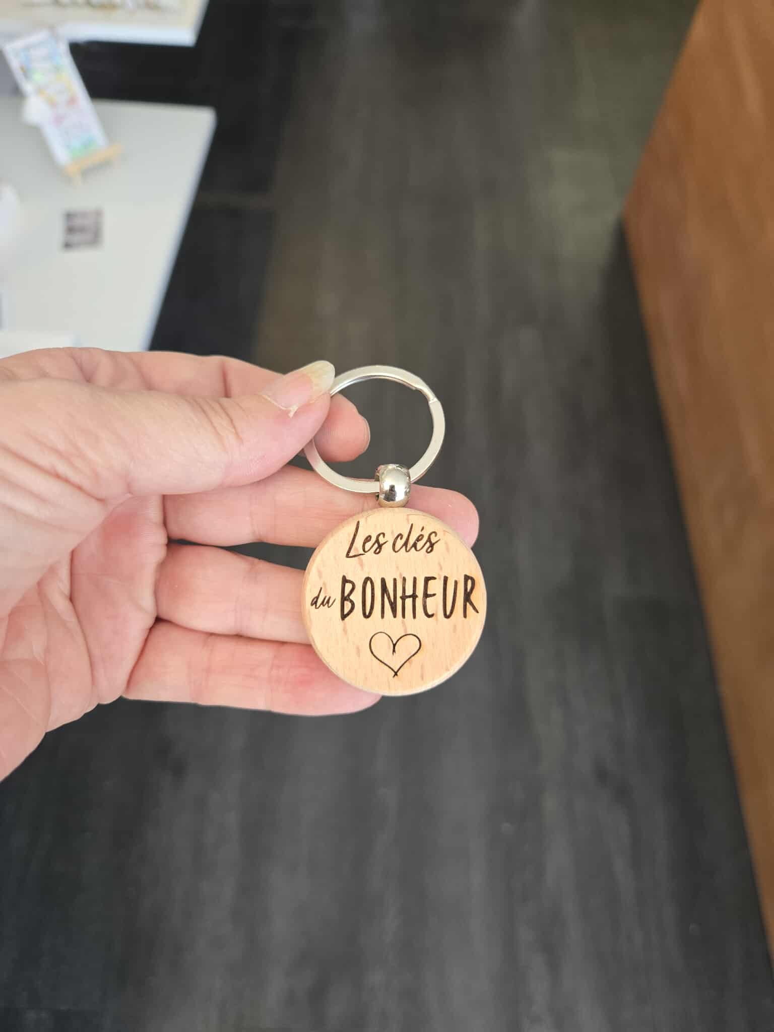 porte clé en bois gravé