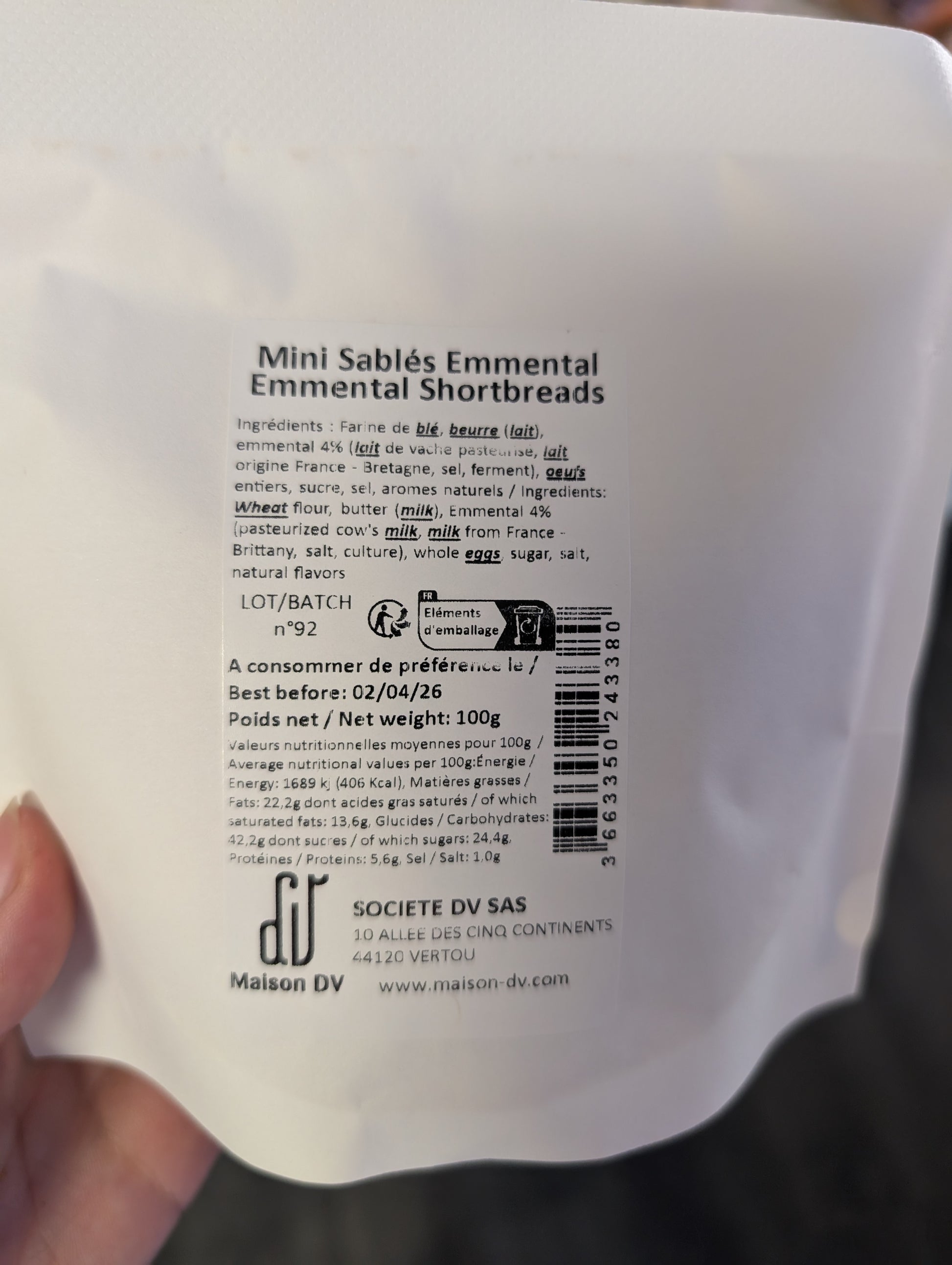 Appréciez nos sablés à l'emmental, une délicate pâtisserie salée alliant la finesse du fromage à une texture croustillante. Idéals en apéritif ou en accompagnement, ces sablés révèlent un équilibre parfait entre goût riche et légèreté, pour une expérience gustative raffinée et authentique.