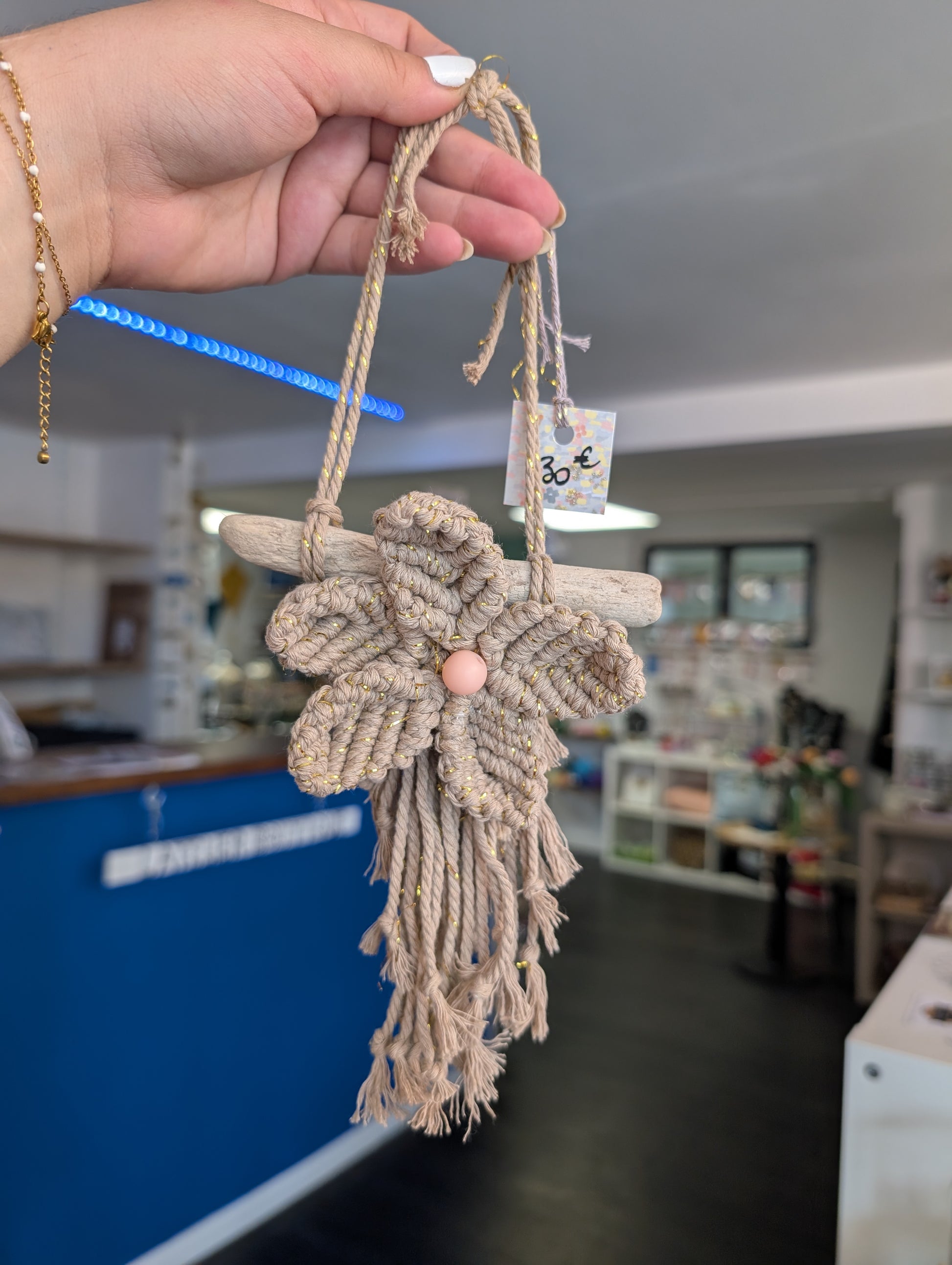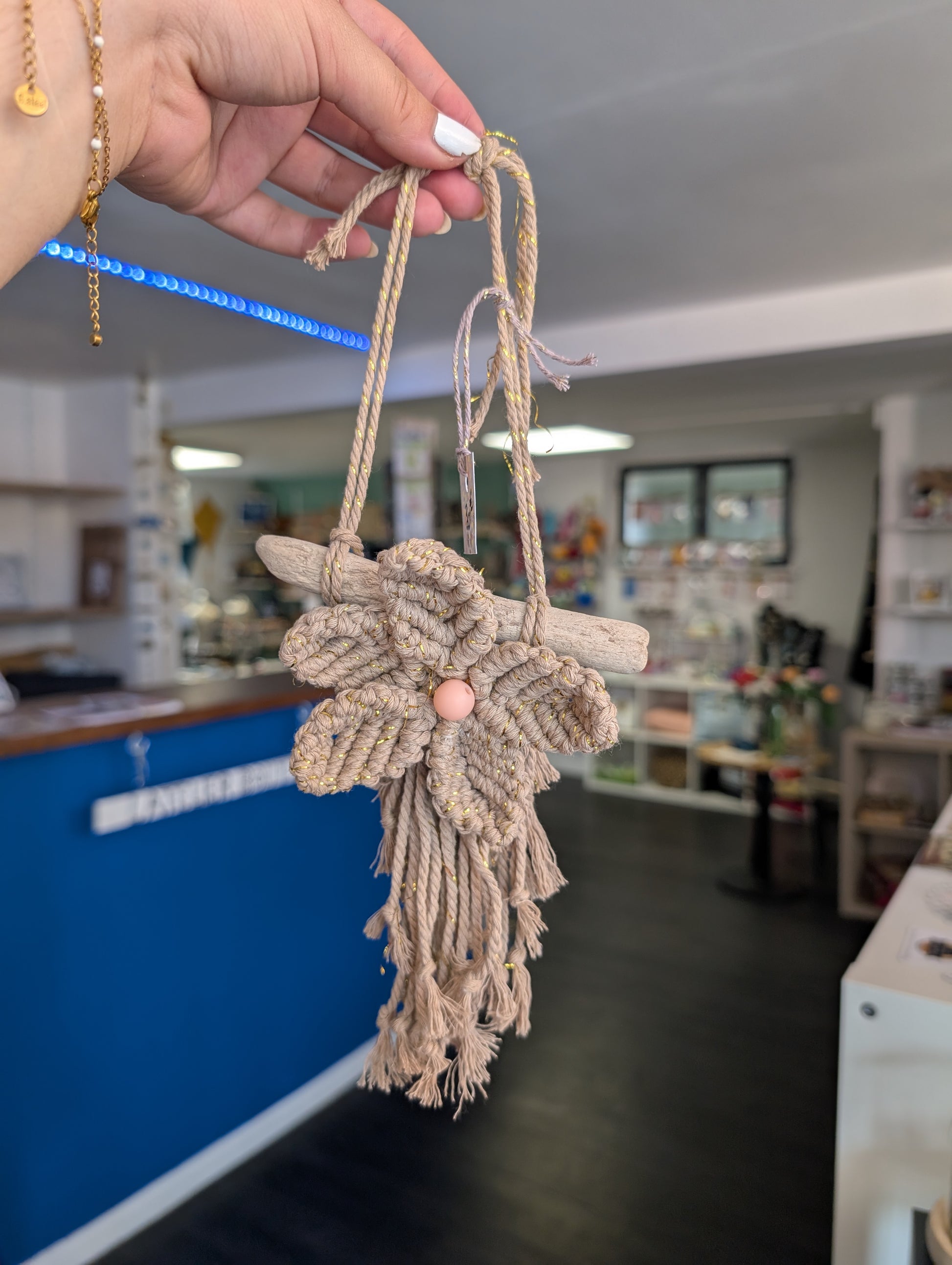 Sublimez votre intérieur avec cette suspension macramé unique en son genre. Fabriquée à la main, cette décoration à suspendre apporte une touche de nature et de douceur grâce à ses fleurs en macramé. Créez une ambiance bohème et accueillante dans votre maison avec cet accessoire artisanal fait pour durer.